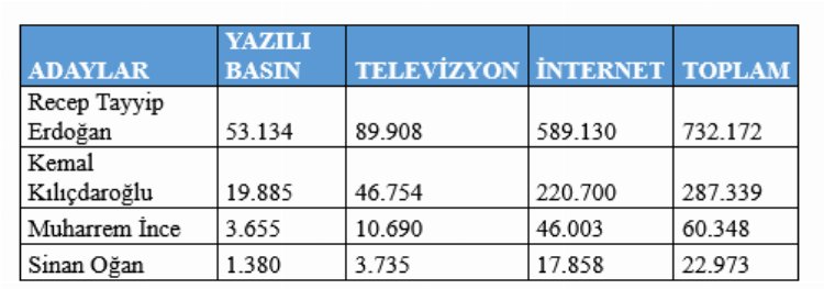 Türkiye, 14 Mayıs’ta yapılacak cumhurbaşkanlığı ve 28’inci Dönem Milletvekili Genel Seçimleri için sandığa gidecek. Yurtiçi ve yurtdışı olmak üzere yaklaşık 65 milyon seçmenin katılım göstereceği 2023 seçimlerine bir aydan az bir süre kalırken cumhurbaşkanı adaylarının medya karneleri belli oldu.