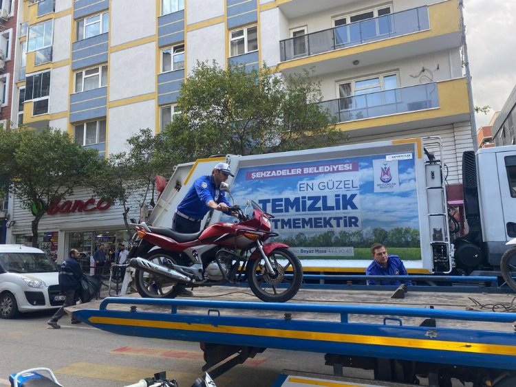 MANİSA (İGFA) – Manisa Büyükşehir Belediyesi Zabıta Dairesi Başkanlığı ekipleri ile Ulaşım Dairesi Başkanlığına bağlı trafik zabıta ekipleri, Emniyet Müdürlüğü ile müşterek çalışma yaparak, şehir merkezinde sorumluluk alanında yer alan cadde ve sokaklarda kaldırım işgaline neden olan ve dükkan önlerine gelişigüzel bir şekilde bırakılan motosikletlerle ilgili işlem yaptı.