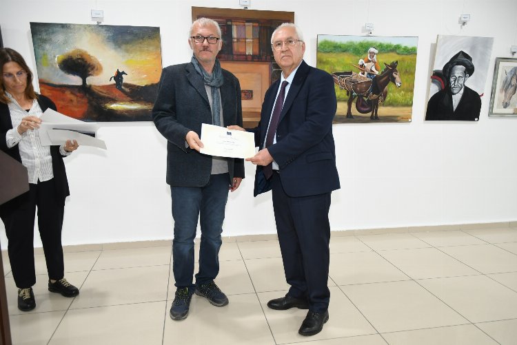 Veysel’in gözleri görmemesine rağmen hayatı çok iyi okuyabildiğini, insanlığa yol gösterdiğini vurgulayan Başkan Selvitopu, sergide eserleri yer alan sanatçılara katılım belgelerini verdi.