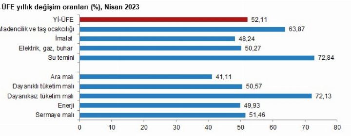TÜİK, yurt içi üretici fiyat endeksi (Yİ-ÜFE)’nin nisanda aylık bazda yüzde 0,81, yıllık bazda ise yüzde 52,11...