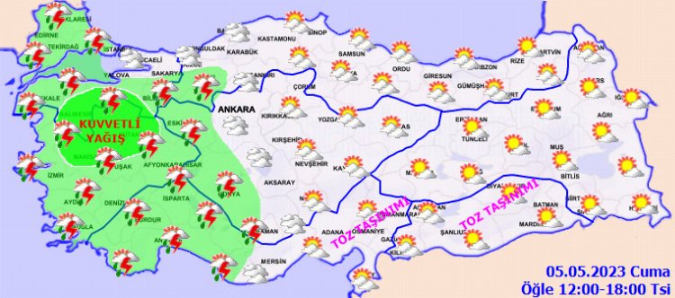 Meteoroloji, İç Ege ve Göller Yöresi ile Çanakkale, Balıkesir ve Bursa çevrelerinde yerel kuvvetli yağış olması beklendiğinden yaşanabilecek olumsuzluklara karşı dikkatli ve tedbirli olunması uyarısında bulundu.