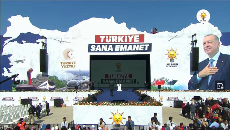 Cumhurbaşkanı ve AK Parti Genel Başkanı Recep Tayyip Erdoğan, Atatürk Havalimanı Millet Bahçesi’nde halka hitap etti. 14 Mayıs’ta gençlerimiz tercihlerini doğrudan yana kullanmalı diyerek “Türkiye Yüzyılını kuracağız” mesajını verdi. Erdoğan, Türkiye Yüzyılının yükselişinin lokomotifinin yine İstanbul olacağını söyledi.