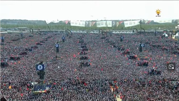 İstanbul Milletvekillerinin tanıtımlarının yapıldığı miting alanına ulaşan Cumhurbaşkanı Erdoğan, Yenikapı Etkinlik Alanı’nın 2 katı, Maltepe Etkinlik Alanı’nın ise 5 katı büyüklüğüyle tarihin en kalabalık mitinginden halka seslendi. Miting alanındaki resmi rakamlarla ilgili paylaşımda bulunan Cumhurbaşkanı Erdoğan, alandakilerin sayısının 1 milyon 700 bin kişi olduğunu söyledi.
