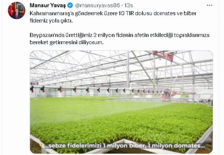 Tural ŞAHBAZLI / KAHRAMANMARAŞ (İGFA)- Kahramanmaraş’ta meydana gelen depremlerin ardından kentte arama kurtarmadan hijyen, gıda gibi birçok konuda vatandaşlara destek olan Ankara Büyükşehir Belediyesi üreticilere yönelik silaj, sıvı gübre ve sebze fidanı dağıtımı gerçekleştirdi.