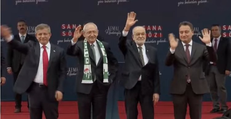 Kılıçdaroğlu’na Gökdere’deki mitingte; Saadet Partisi Genel Başkanı Temel Karamollaoğlu, DEVA Partisi Genel Başkanı Ali Babacan, Gelecek Partisi Genel Başkanı Ahmet Davutoğlu da eşlik ediyor.