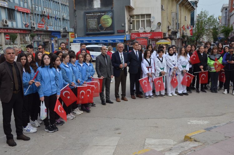 Programda, Müdür Vedat Çimen’in Atatürk Anıtı’na çelenk sunmasının ardından, saygı duruşunda bulunuldu ve İstiklal Marşı okundu.