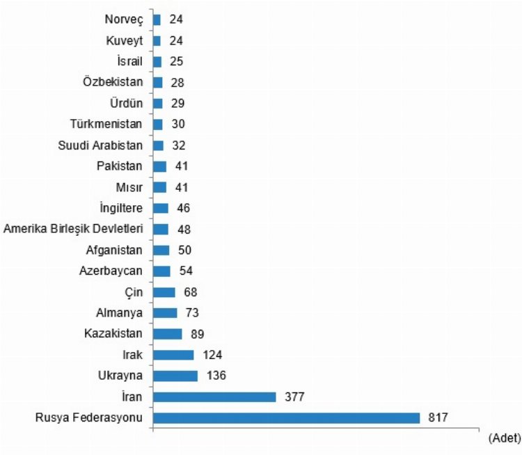 Nisan ayında Rusya Federasyonu vatandaşları Türkiye’den 817 konut satın aldı. Rusya Federasyonu vatandaşlarını sırasıyla 377 konut ile İran, 136 konut ile Ukrayna ve 124 konut ile Irak vatandaşları izledi.