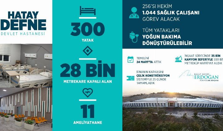 Cumhurbaşkanı Erdoğan, Defne Devlet Hastanesi’nin 22 Mayıs Pazartesi gününden itibaren hasta kabulüne başlayacağını açıkladı. HATAY (İGFA) –...