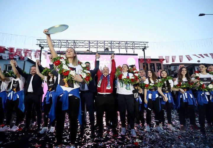 Kadınlar Hentbol 1’inci Ligi’ni şampiyon tamamlayıp Süper Lig’e çıkan Bursa Büyükşehir Belediyespor Kulübü Kadın Hentbol Takımı Poyrazın...