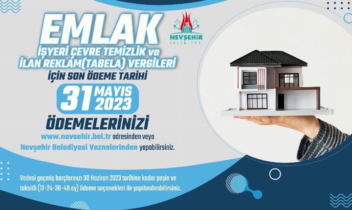 Nevşehir Belediyesi Mali Hizmetler Müdürlüğü, 2023 Yılı Emlak, Çevre Temizlik ve İlan Reklam Vergilerinin ilk taksit ödemelerinin...