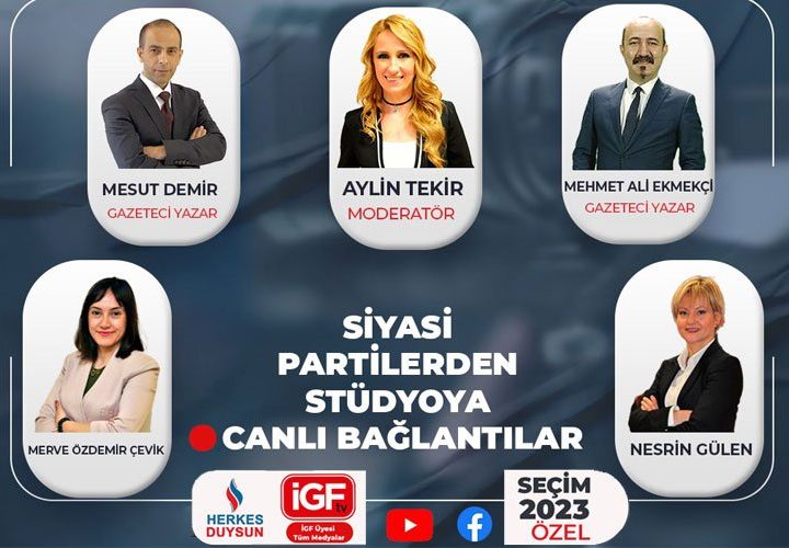 Türkiye’nin 13. Cumhurbaşkanının belirleyeceği seçim heyecanı, İGF TV ve Herkes Duysun TV ortak yayınıyla İGF Haber Ajansı...