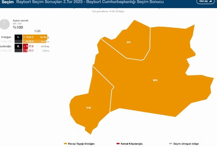 Ülke genelinde sandık sayımlarının devam ettiği Cumhurbaşkanlığı ikinci turuna ilişkin ilk tamamlanan il Bayburt oldu. ANKARA (İGFA)...