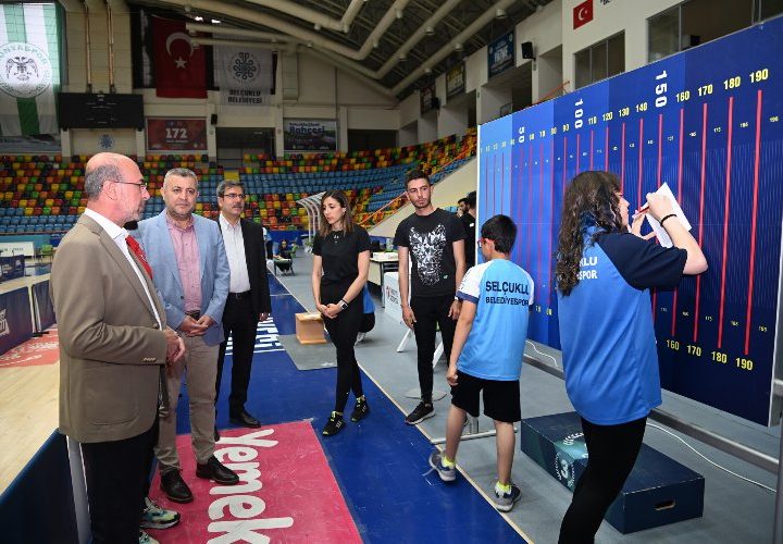 Konya’da Sporcu Seçme ve Yetiştirme Projesi kapsamında uygulanan ölçüm testlerinin demo çalışması Selçuklu Belediyesi Uluslararası Spor Salonunda...