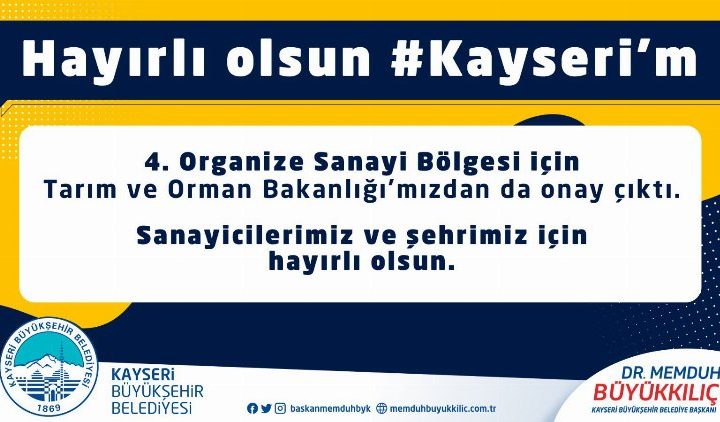 Kayseri Büyükşehir Belediye Başkanı Dr. Memduh Büyükkılıç, ticaretin, endüstrinin ve sanayinin merkezi Kayseri’ye bir müjde paylaşarak, “4’üncü...