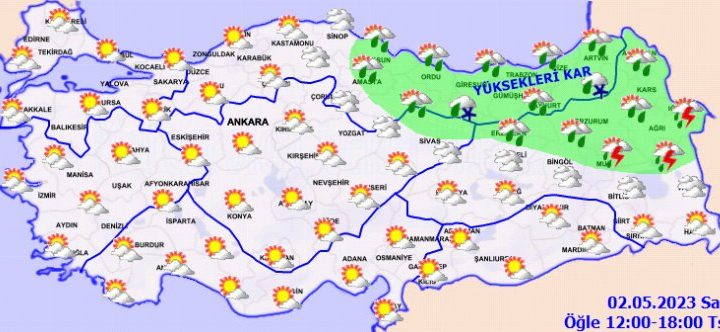 Ülke genelinin parçalı ve çok bulutlu, Doğu Karadeniz’in iç kesimlerinin yükseklerinin yağmur ve karla karışık yağmurlu geçeceği tahmin...