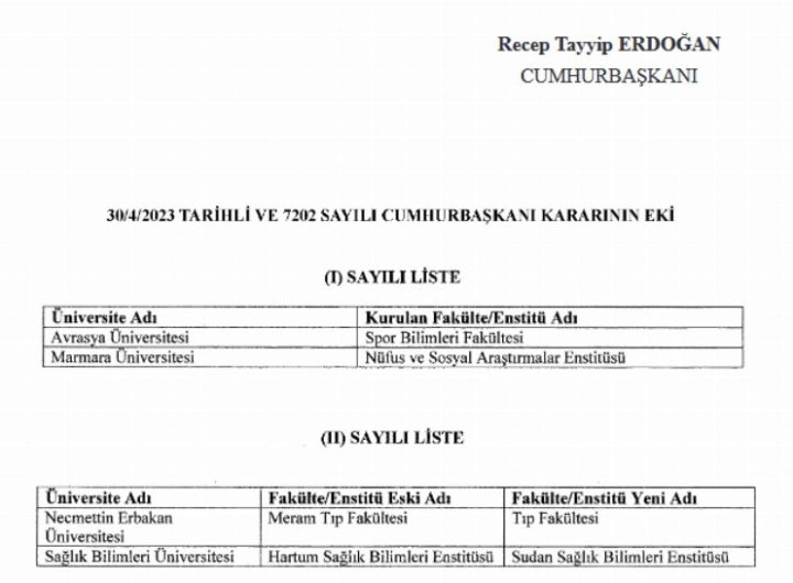 Bugünkü Resmi Gazete’de yayımlanan Cumhurbaşkanı Recep Tayyip Erdoğan’ın imzasıyla iki üniversiteye yeni bölümler kurulurken, iki üniveristede de...