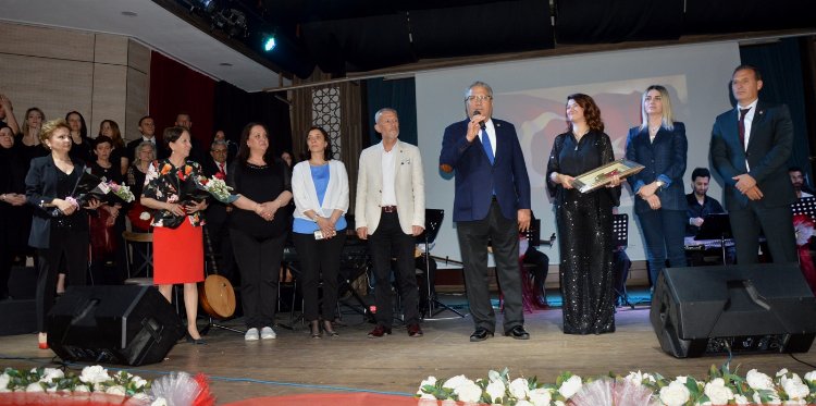 Başkan Çerçi, Koro Şefi Şebnem Coşkun’a Halk Eğitimi Merkezi tarafından yapılan tabloyu hediye etti.