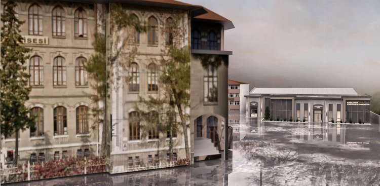 Konya Büyükşehir Belediyesi’nin tarihi Konya Lisesi bahçesinde yapımını sürdürdüğü konferans ve spor salonu inşaatı hızla yükseliyor.