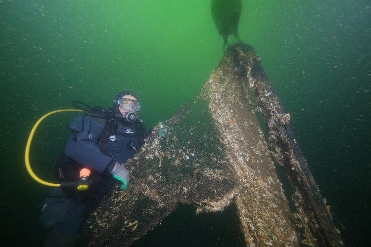 Temizliğin ardından su altından çıkarılan atıklar etkinlik alanında sergilendi. Kıyı temizliği kapsamında dalgıçlar 5 ton hayalet ağı temizledi.