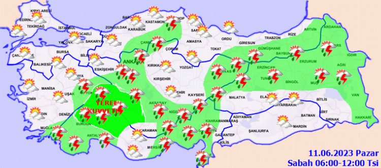 Yapılan son değerlendirmelere göre; İç Anadolu’nun güney ve doğusu (Sivas, Kırşehir, Kırıkkale, Kayseri, Çankırı Konya, Karaman, Aksaray, Yozgat, Nevşehir, Niğde ile Ankara’nın güney ve doğusu), Orta Karadeniz’in iç kesimleri (Tokat, Amasya, Çorum ile Kastamonu’nun güneyi), Afyonkarahisar, Burdur ,Isparta, Antalya’nın iç kesimleri ile Adana’nın kuzeyinde yerel olarak kuvvetli (21-50 kg/m2) sağanak ve gök gürültülü sağanak yağış beklendiğinden sel, su baskını, yıldırım, yerel dolu yağışı ve yağış anında kuvvetli rüzgar gibi olumsuzluklara karşı dikkatli ve tedbirli olunması gerekmektedir.