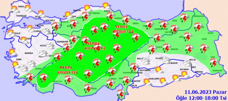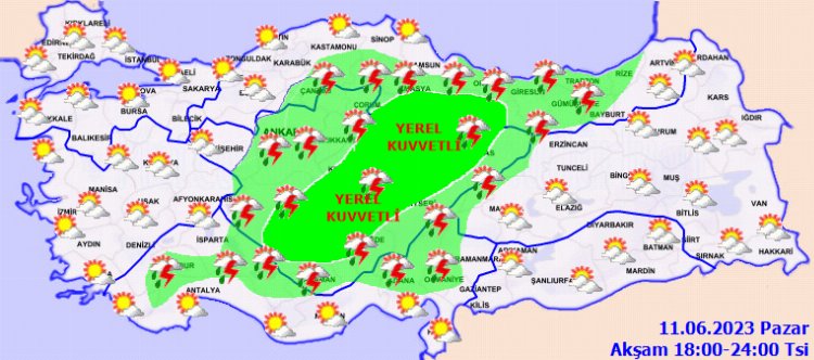Yapılan son değerlendirmelere göre; İç Anadolu’nun güney ve doğusu (Sivas, Kırşehir, Kırıkkale, Kayseri, Çankırı Konya, Karaman, Aksaray, Yozgat, Nevşehir, Niğde ile Ankara’nın güney ve doğusu), Orta Karadeniz’in iç kesimleri (Tokat, Amasya, Çorum ile Kastamonu’nun güneyi), Afyonkarahisar, Burdur ,Isparta, Antalya’nın iç kesimleri ile Adana’nın kuzeyinde yerel olarak kuvvetli (21-50 kg/m2) sağanak ve gök gürültülü sağanak yağış beklendiğinden sel, su baskını, yıldırım, yerel dolu yağışı ve yağış anında kuvvetli rüzgar gibi olumsuzluklara karşı dikkatli ve tedbirli olunması gerekmektedir.