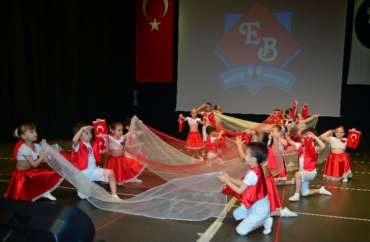 Salonu dolduran velilerinin gurur olan Egeberkli minikler; bale resitalinden cimnastiğe, dans gösterisinden Türkçe, İngilizce ve Almanca olarak söyledikleri şarkılara kadar yetenekleriyle büyük alkış aldılar.