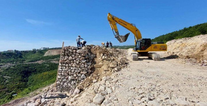 Kocaeli Büyükşehir Belediyesi tarafından Dilovası Hastane bağlantı yolunda vadiden geçecek 212 metre uzunluktaki köprünün ayakları yapılıyor KOCAELİ...