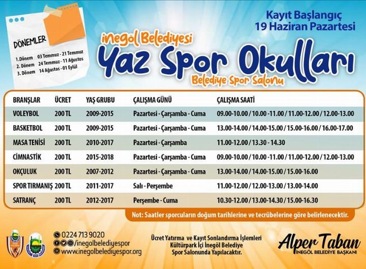 Öğrencilerin keyifli, eğlenceli ve fiziksel gelişimleri açısından verimli bir dönem geçirmelerini sağlamak amacıyla İnegöl Belediye Spor Kulübü...