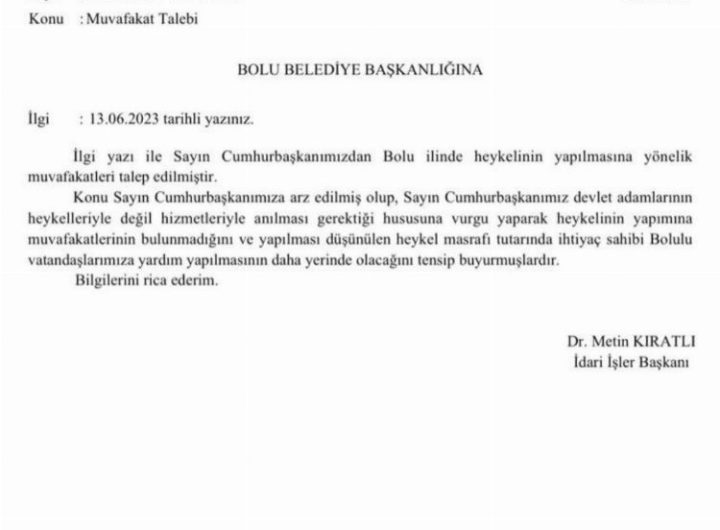 Bolu Belediye Başkanı Tanju Özcan’ın Cumhurbaşkanı Recep Tayyip Erdoğan’ın seçimi kazanması halinde Bolu’ya heykelini dikmek için talep...