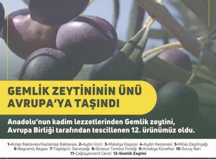 Türkiye ile özdeşleşen ürünlerin uluslararası alanda tanıtmaya ve kırsal kalkınmaya katkı sağlanırken Gemlik Zeytini, Avrupa Birliği tarafından...