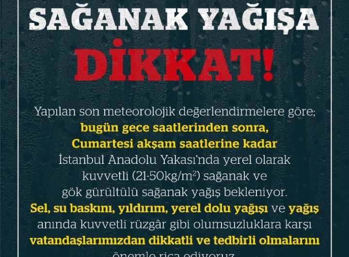 İstanbul Anadolu Yakası’nda bu gece ve yarın sağanak beklenen kuvvetli sağanak yağış dolayısıyla İstanbul Valiliği vatandaşları tedbirleri...