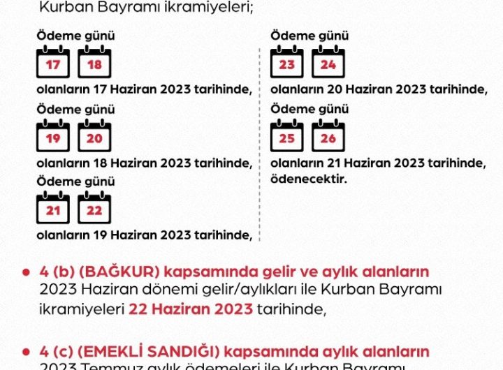 Emekli aylıkları ve bayram ikramiyeleri 17-23 Haziran arasında ödenecek. Bu kapsamda 14,4 milyon emekliye 25,7 milyar lira...