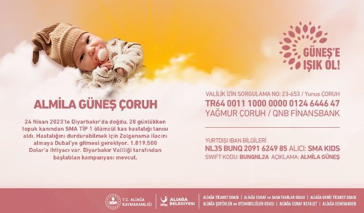 Aliağa’da kamu kurumları ve sivil toplum kuruluşları, Spinal Müsküler Atrofi (SMA) Tip-1 teşhisi konulan 1,5 aylık bebek...