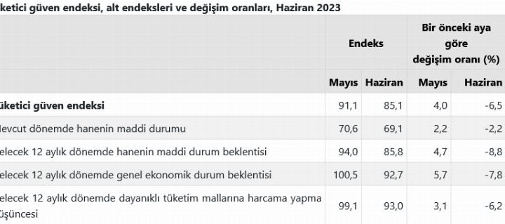 Tüketici Güven Endeksi Haziran’da yüzde 6,5 oranında azaldı. ANKARA (İGFA) – Türkiye İstatistik Kurumu (TÜİK) 2023 Haziran...