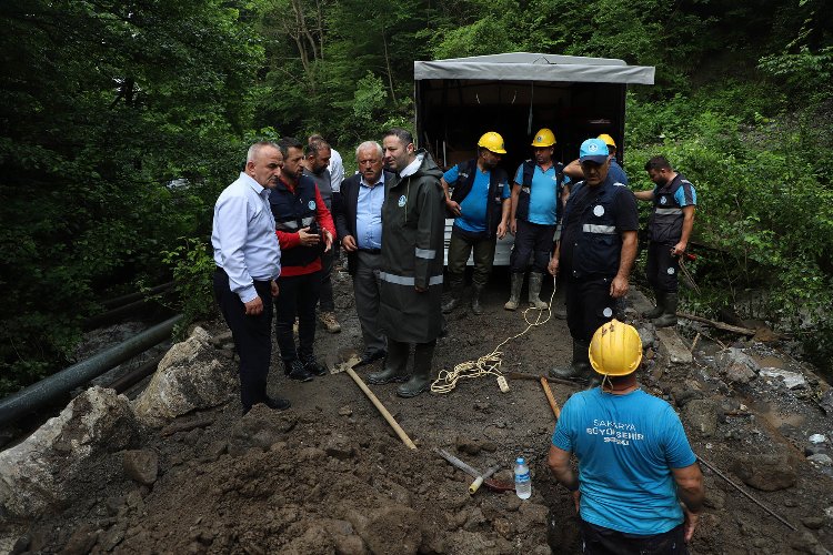 Sakarya’da etkili sağanak yağış sonrası taşan dere sebebiyle zarar gören Hendek Çamlıca Mahallesi’ndeki içmesuyu hattında SASKİ ekipleri onarım çalışmalarını sürdürüyor.