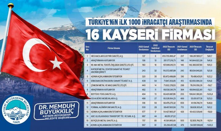 Kayseri Büyükşehir Belediye Başkanı Dr. Memduh Büyükkılıç, Türkiye İhracatçılar Meclisi (TİM) tarafından her yıl geleneksel olarak düzenlenen...