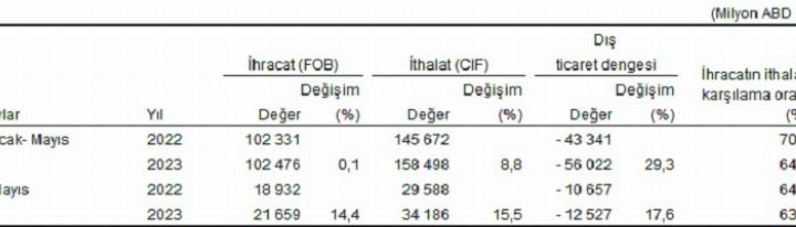 Mayıs ayında genel ticaret sistemine göre ihracat yüzde 14,4, ithalat ise yüzde 15,5 oranında arttı. Türkiye ekonomisi...