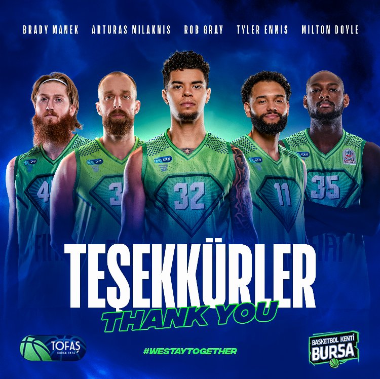 Tofaş Spor Kulübü, 2023-2024 sezonu kadrosunda yer almayacak olan yabancı oyuncular Tyler Ennis, Rob Gray, Arturas Milaknis, Brady Manek ve Milton Doyle’a teşekkür ederek yollarını ayırdı.