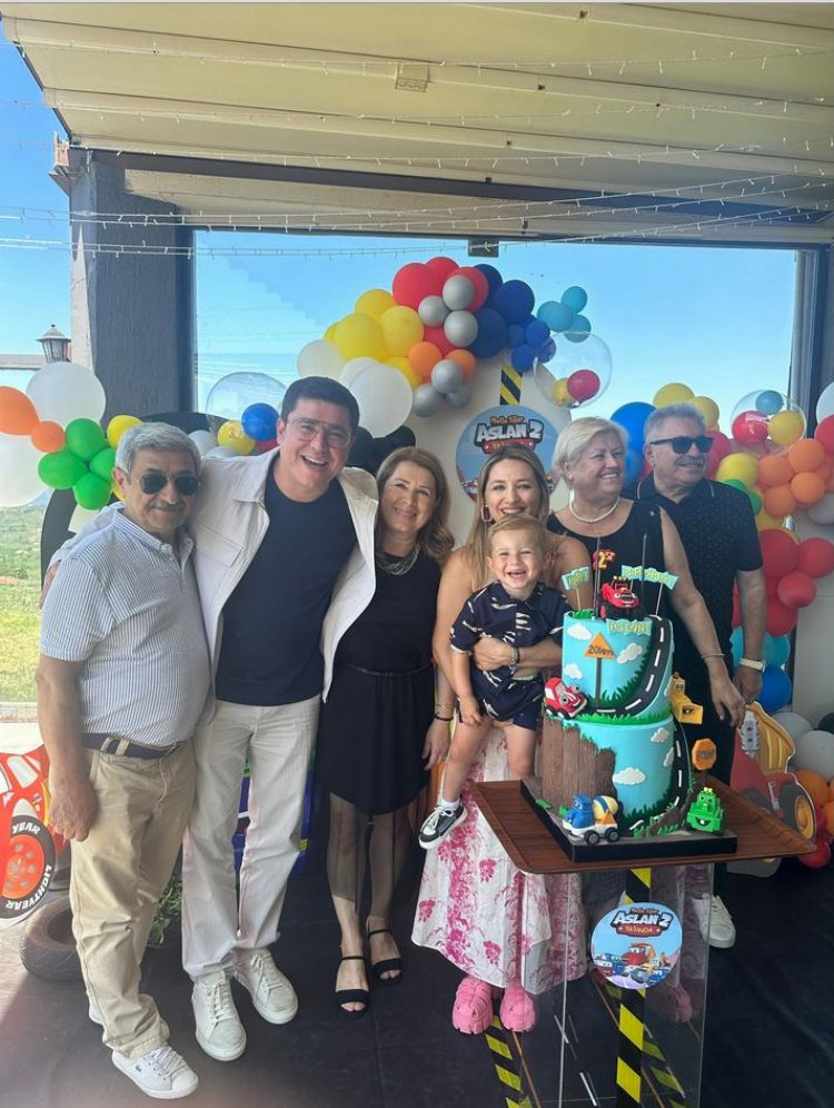 Çok sevdiği arabalar konseptiyle hazırlanan pastanın üzerindeki mumları üfleyen Aslan Oktay, gün boyu etrafına neşe saçtı.