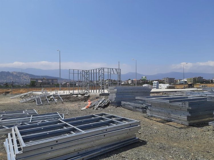 Kahramanmaraş merkezli depremlerden en çok etkilenen bölgelerden biri olan Gaziantep’in İslahiye ilçesinde Osmangazi Belediyesi tarafından kurulan Osmangazi Mahallesi’nde prefabrik konutlar tamamlanırken sıra sosyal alanlara geldi.