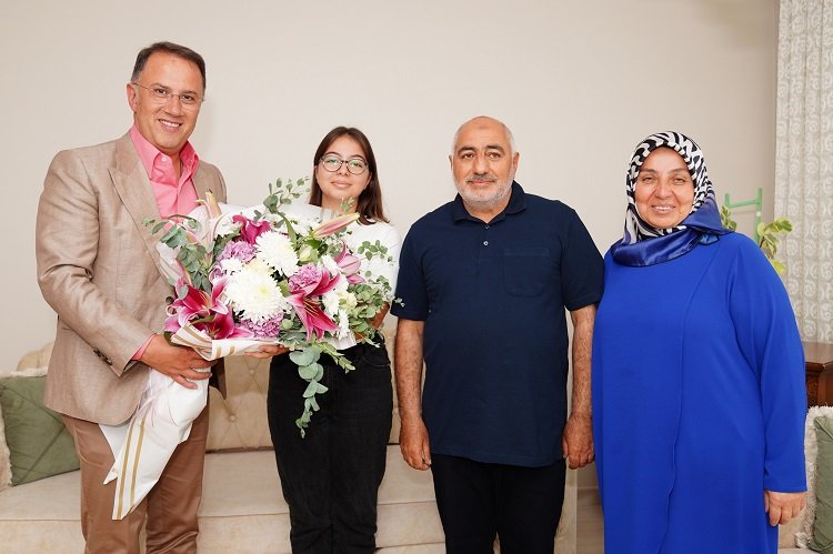 İstanbul’un Beylikdüzü Belediye Başkanı Mehmet Murat Çalık, Liselere Geçiş Sınavı’nda (LGS) 500 tam puan alarak Türkiye birinciliğini paylaşan Beril Gülser ve Ayşenur Eflal Demiray’ı ziyaret ederek başarılarından ötürü tebrik etti.