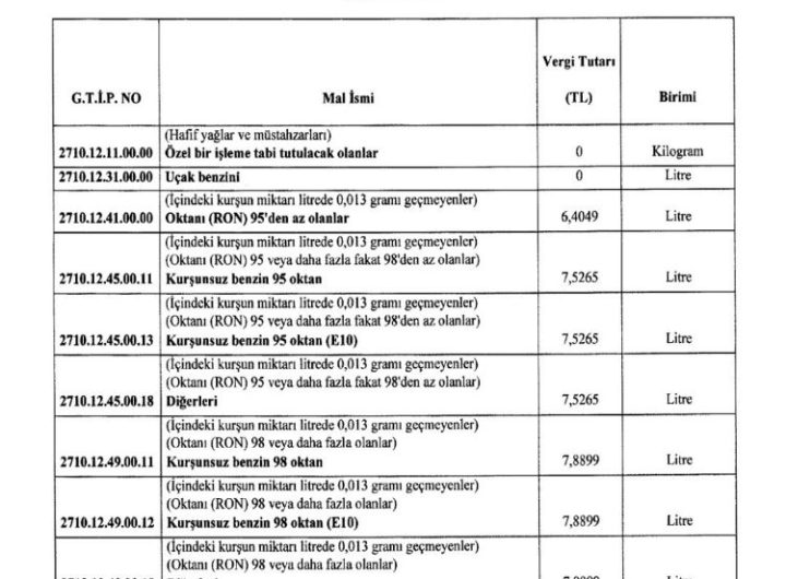 Gaz, yağ ve akaryakıt ürünlerinde özel tüketim vergisi tutarlarının yeniden belirlenmesine dair Cumhurbaşkanı kararı Resmi Gazete’de yayımlandı....