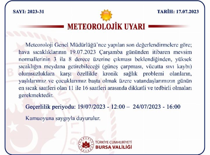 Meteoroloji Genel Müdürlüğü, Marmara Bölgesi için 19 Temmuz Çarşamba gününden itibaren yüksek sıcaklık uyarısında bulundu. Yetkililer, günün...