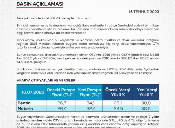 Akaryakıttaki ÖTV artışı sonrası gelen tepkilere benzin ve motorinin ülkeler arası fiyatlarına yönelik karşılaştırmalı tablo ile yanıt...