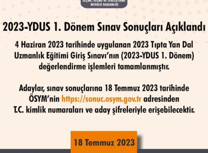 ÖSYM, 2023 Tıpta Yan Dal Uzmanlık Eğitimi Giriş Sınavı (2023-YDUS 1. Dönem) sonuçlarını açıkladı. ANKARA (İGFA) –...