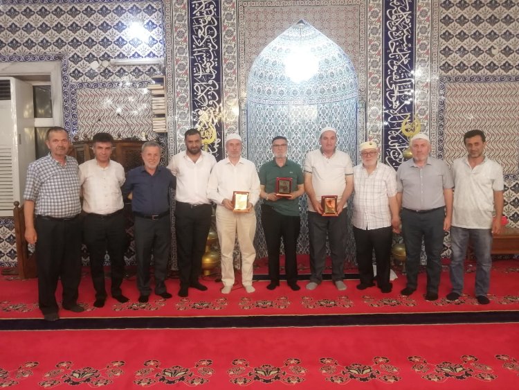 Gecede Mehmet Yiğit’e ve emekli olan imamlara plaket takdim edildi ve Kuran-ı Kerim okundu.