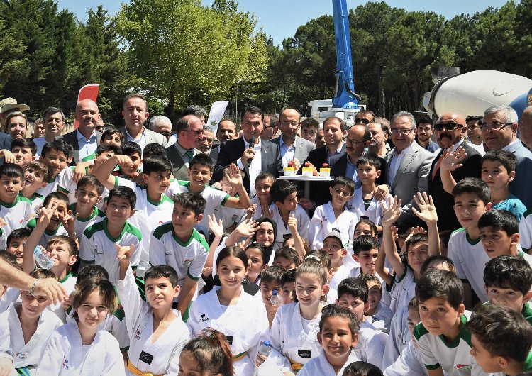 Konuşmalar sonrasında Emek Spor Tesisi’ne ilk harcı davetli protokol dökerken, Başkan Dündar yaz spor okulu öğrencileri ile bir araya geldi.