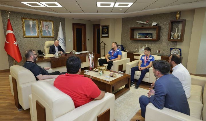 662. Kırkpınar Yağlı Güreşlerinde derece alan pehlivanlar, Kocaeli Büyükşehir Belediye Başkanı Tahir Büyükakın ile buluştu KOCAELİ (İGFA)...