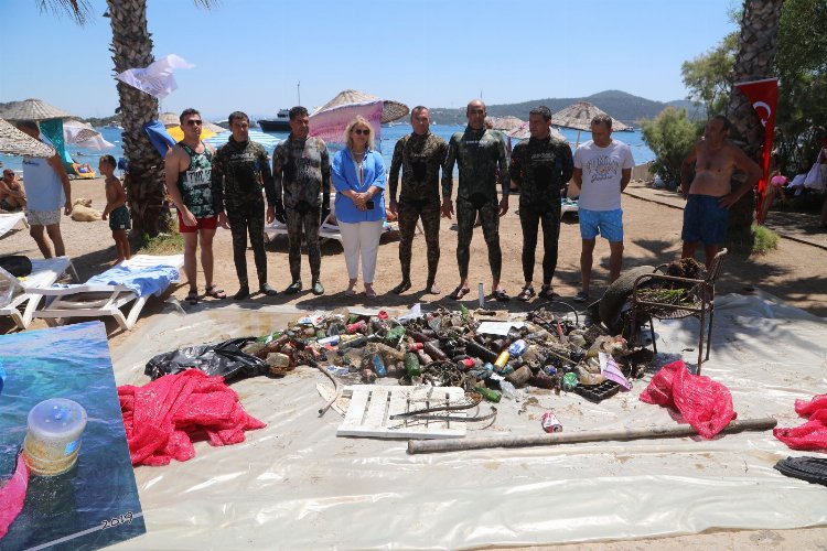 Yaklaşık bir saat süren deniz dibi temizliği çalışmasında, cam ve metal şişeler ile plastik, metal atıklar, balıkçı ağları ve araç lastiklerinden oluşan 200 kilograma yakın atık kıyıya çıkarıldı. Farkındalık yaratması için kıyıda bir süre sergilenen atık malzemeler, ekipler tarafından ayrıştırılarak Bodrum Belediyesi 1. Sınıf Atık Getirme Merkezi’ne götürüldü.