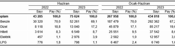 TÜİK, Motorlu Kara Taşıtları’nda Haziran ayına ilişkin istatistikleri yayımladı. Buna göre, Haziran ayında 193 bin 688 adet...